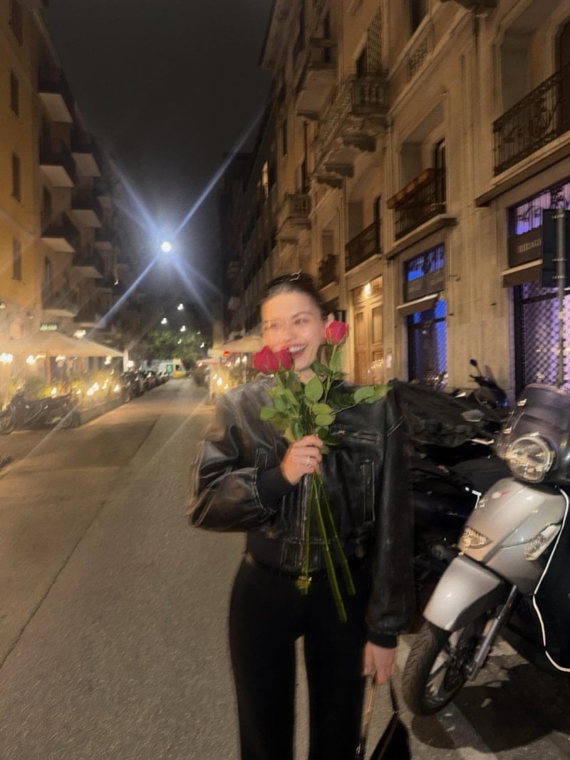 İtalya’nın moda başkenti Milano’ya giden Afra Saraçoğlu, güzelliği ve tarzıyla tüm bakışları üzerine topladı.