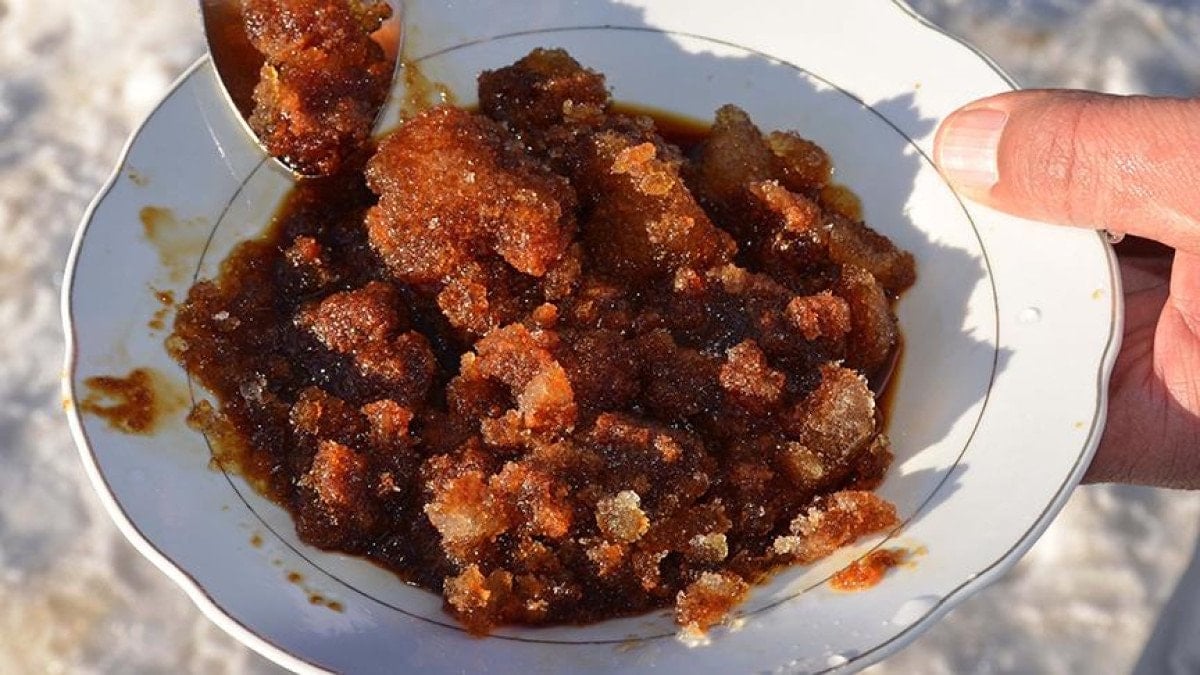 Bitlis’in Hizan ilçesindeki vatandaşlar, 3 bin 200 rakımdaki Karlıtepe’den getirilen kar ile pekmezi karıştırarak “karsambaç” tatlısını hazırlıyor.
