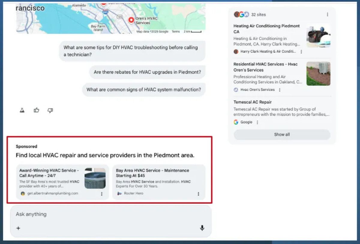 Sosyal medya platformu X üzerindeki kullanıcılar, yerel hizmet aramalarında yapay zeka yanıtlarının altında reklamların belirdiğini rapor etti.