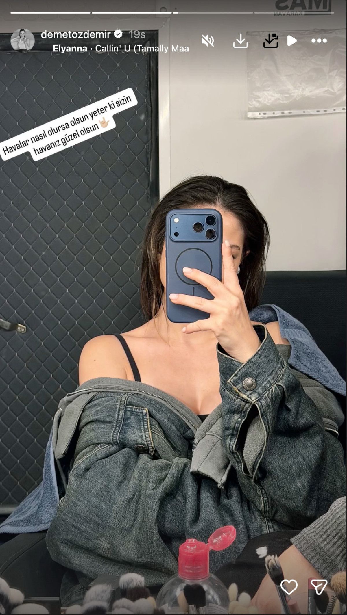 Güzel oyuncu yayınladığı karesine, “Havalar nasıl olursa olsun sizin havanız güzel olsun” notunu düştü.