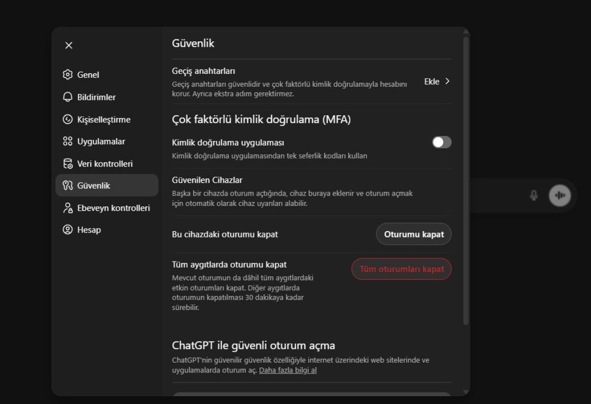 Ayarlar menüsündeki Veri Kontrolleri kısmından “Modeli herkes için iyileştir” seçeneğini kapatarak OpenAI’nin gelecekteki modelleri sizin verilerinizle eğitmesinin önüne geçebilirsiniz.