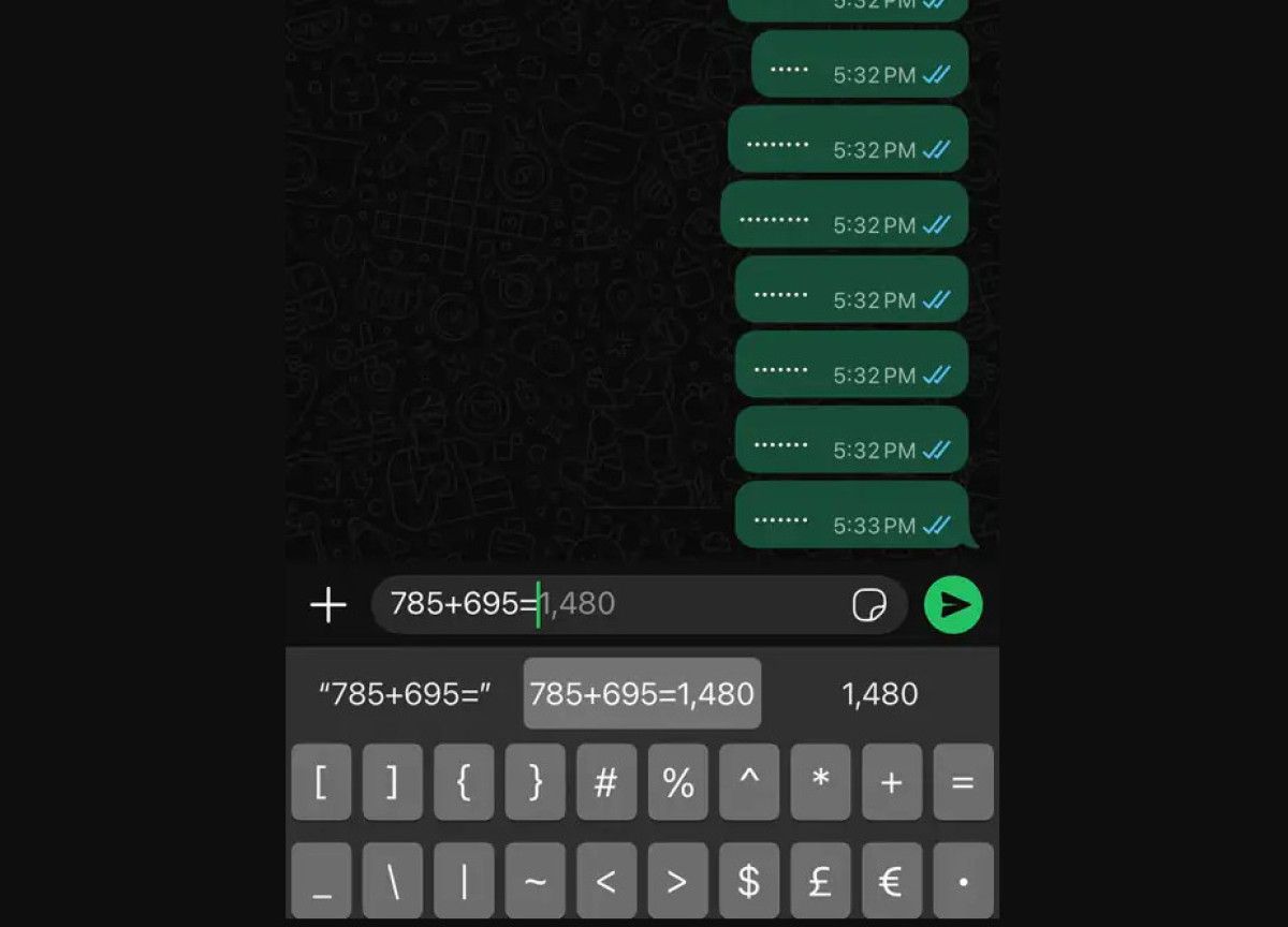 Mesajlar, Notlar veya Spotlight Arama gibi uygulamalarda “540*2+69” gibi bir denklem yazdığınızda, cevap otomatik olarak gösteriliyor.