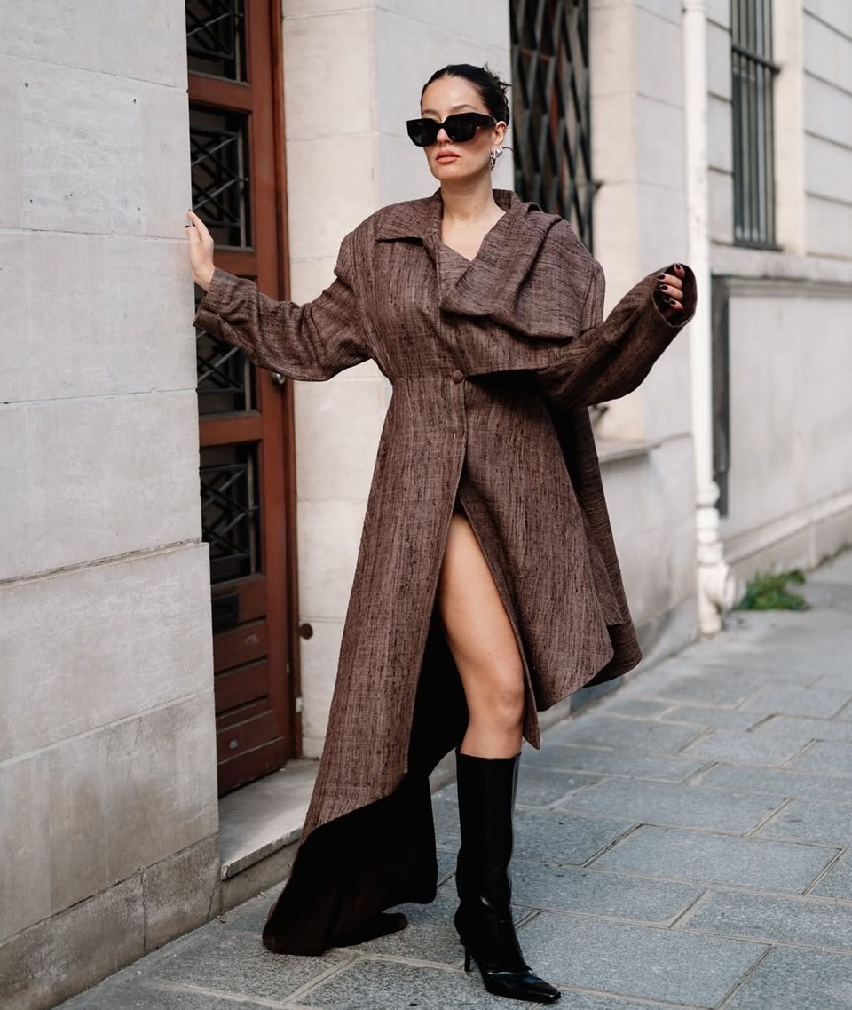 39 yaşındaki Pelin Akil, Paris sokaklarında kahverengi pardesüsü ve siyah çizmeleriyle objektif karşına geçti.