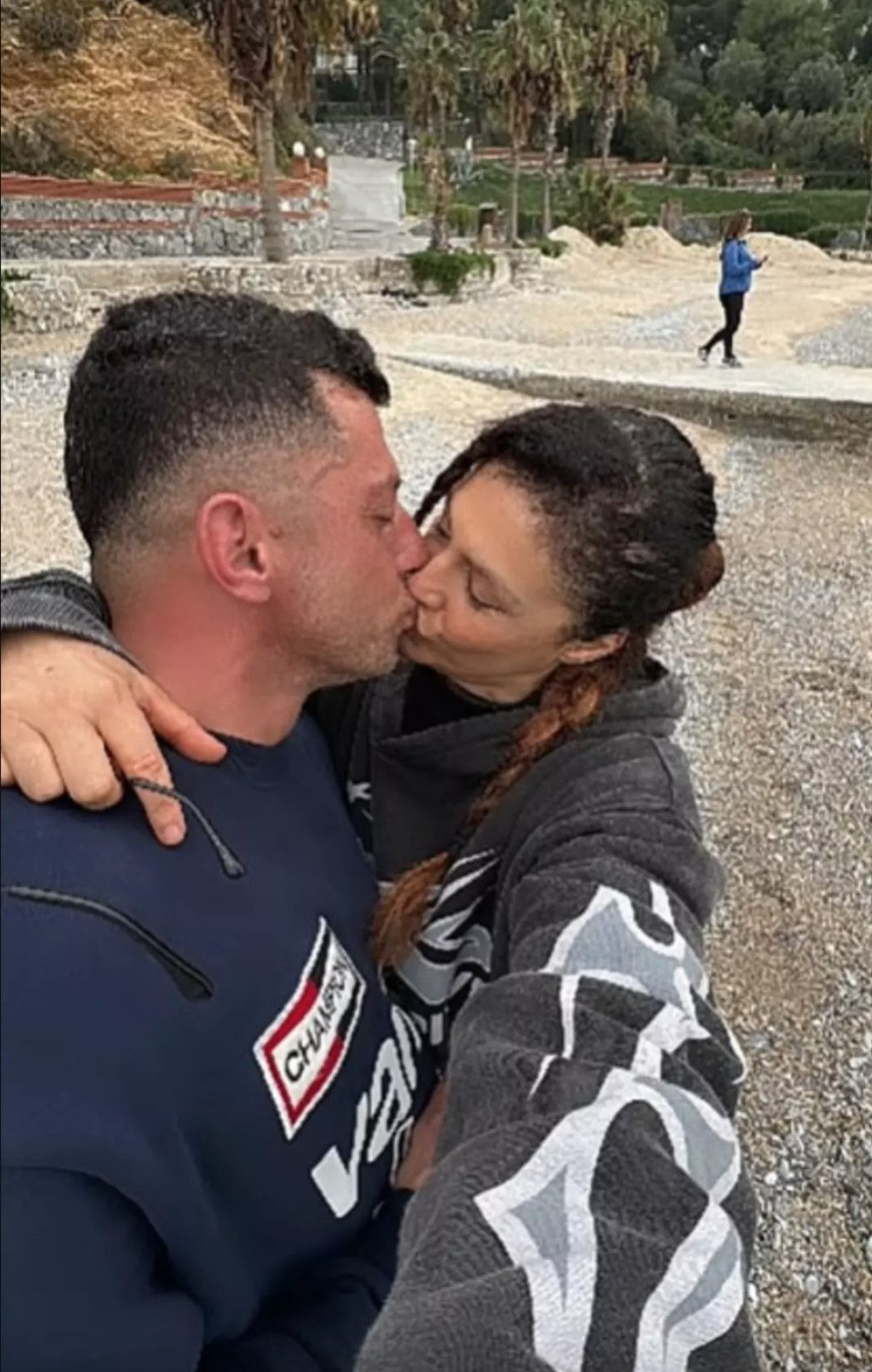 Sevgilisiyle dudak dudağa poz verdi