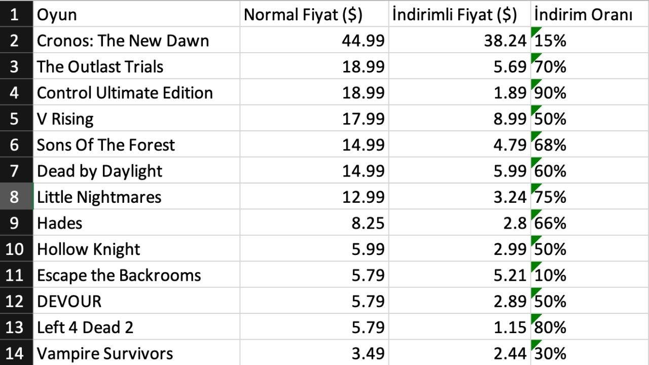 Steam’deki bu indirimler Cadılar Bayramına özel olarak başlayan indirimler kapsamında yer alıyor. İndirimlerin temasına uygun olarak daha çok korku oyunu odaklı oyunlarda indirimler söz konusu ancak bazı oyunların dışında temadan bağımsız oyunlar da indirimde yer alıyor.