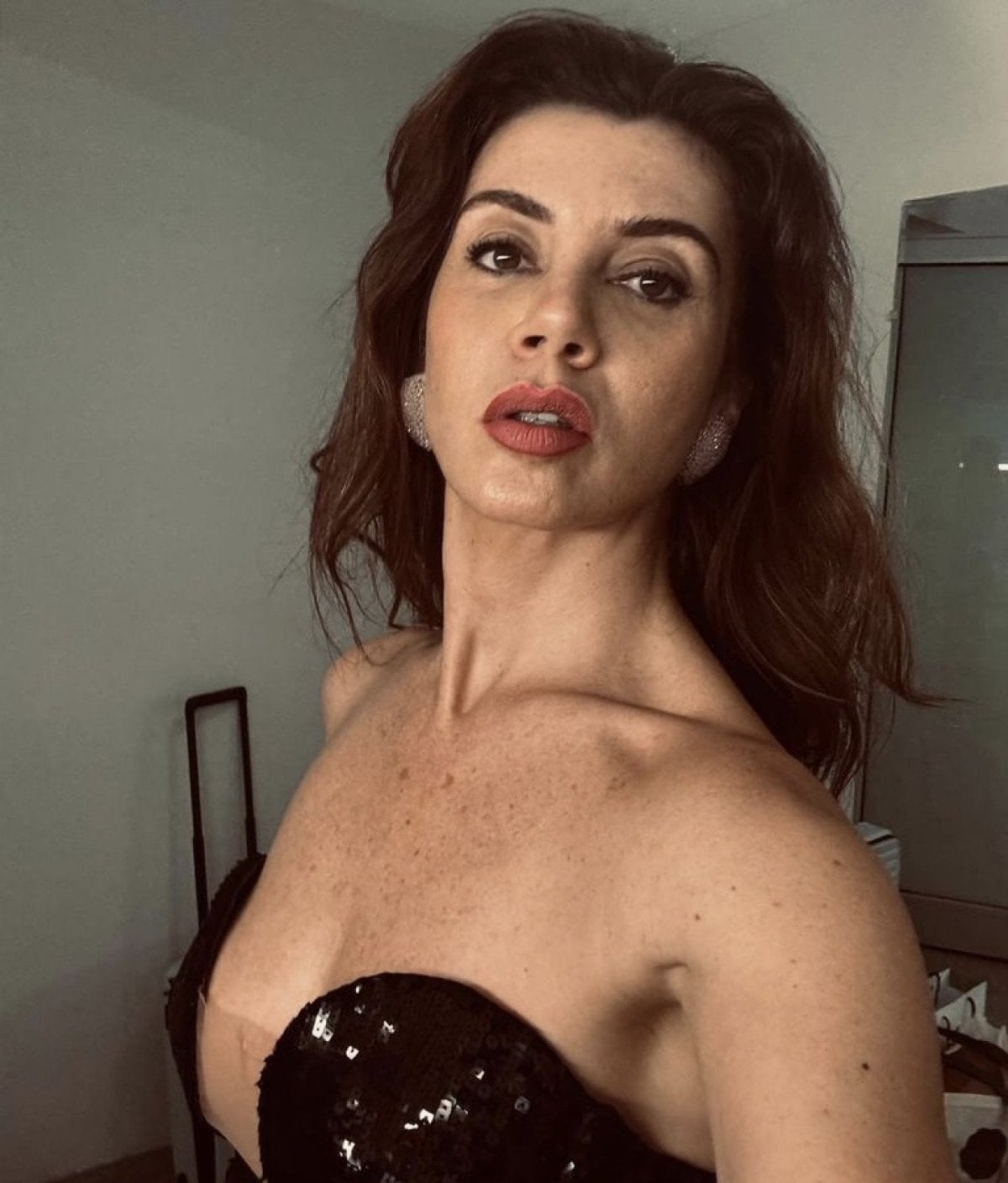 DERİN DEKOLTELİ KIYAFET TERCİH ETTİ